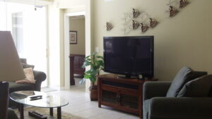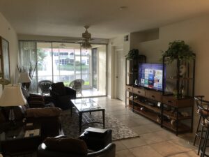 Fully furnished 2-bedroom, 2 bath + den, 1st floor condo. Ceramic tile throughout. Has direct view of lighted fountain from…