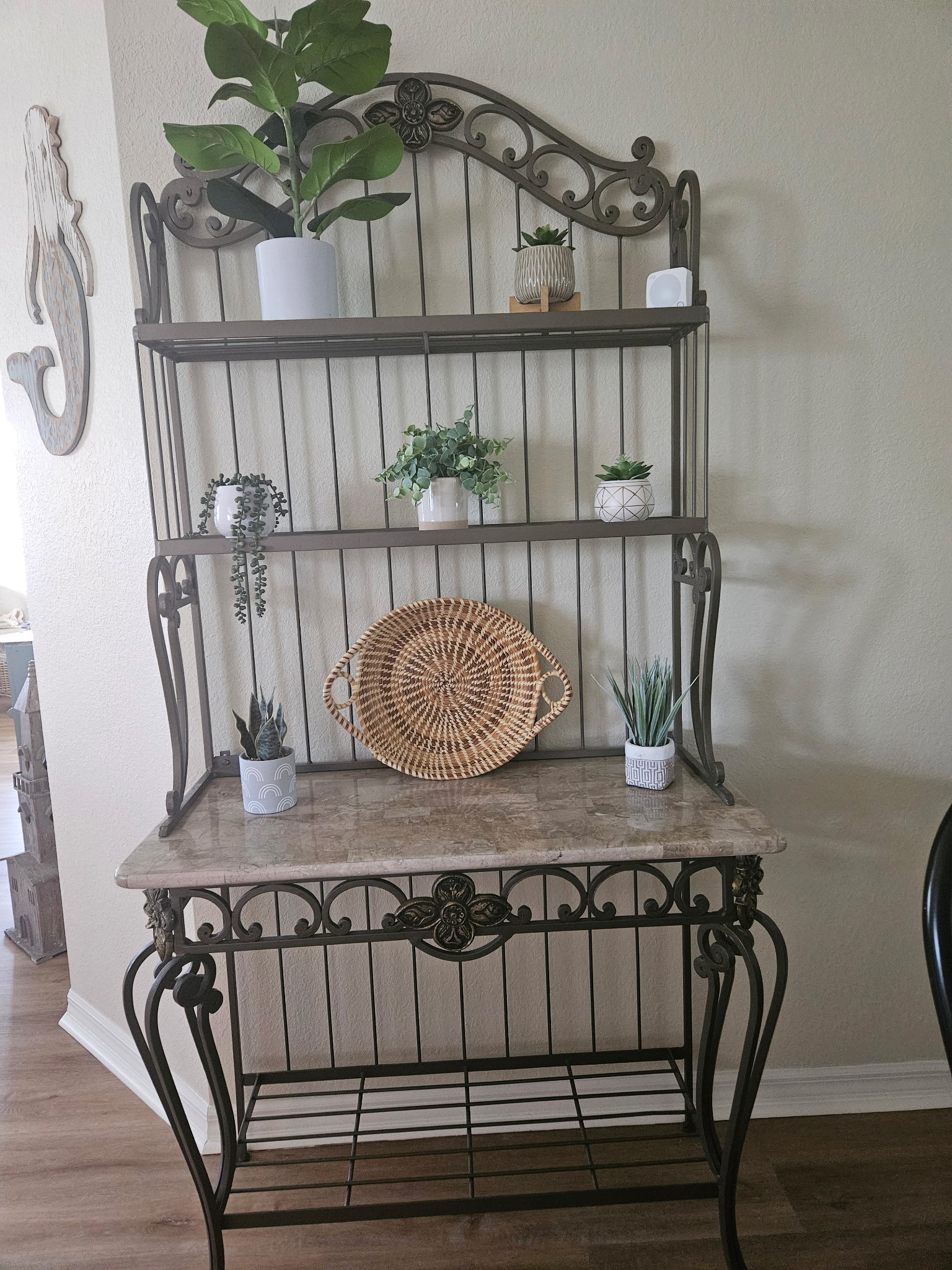 ClassifiedsFurnitureBeautiful Cast Iron & Marble Bakers or Plant Rack Beautiful Cast Iron & Marble Bakers or Plant Rack $150 OBO Expires in 6 days Contact Seller Michael Ward (847) 343-9286 mikeward58@gmail.com Description 38″W x 18″D x 78″H. Like NEW. High quality. Located in Light House Bay.