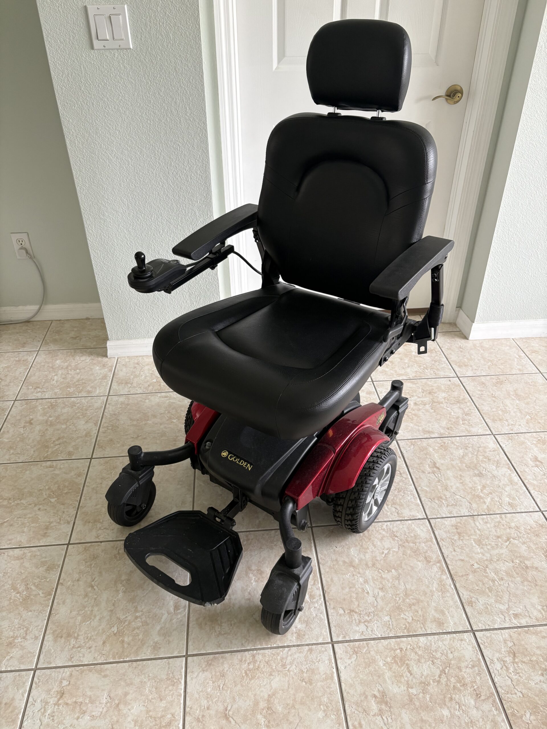 Power wheelchair. Great to get around the community. Very maneuverable with joy stick and variable speed. Up to 19 miles on a charge. $1800.00 Suggested retail price new is $4999.00
