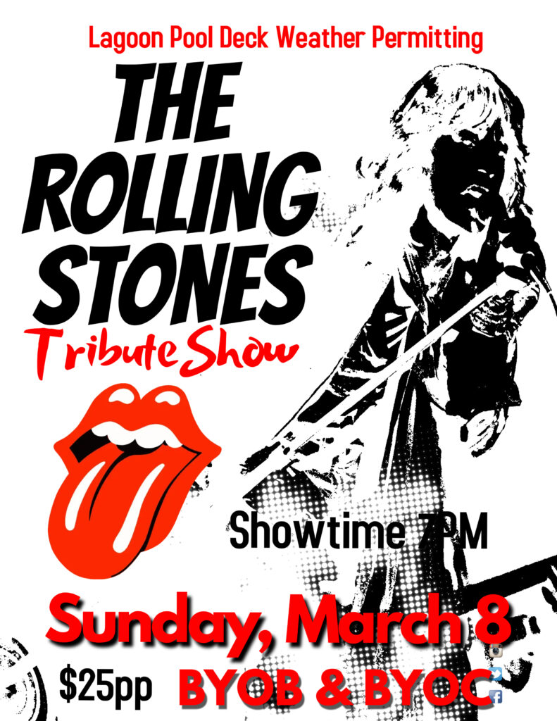 Sunday, March 8 7pm $25pp Pool Deck Weather Permitting